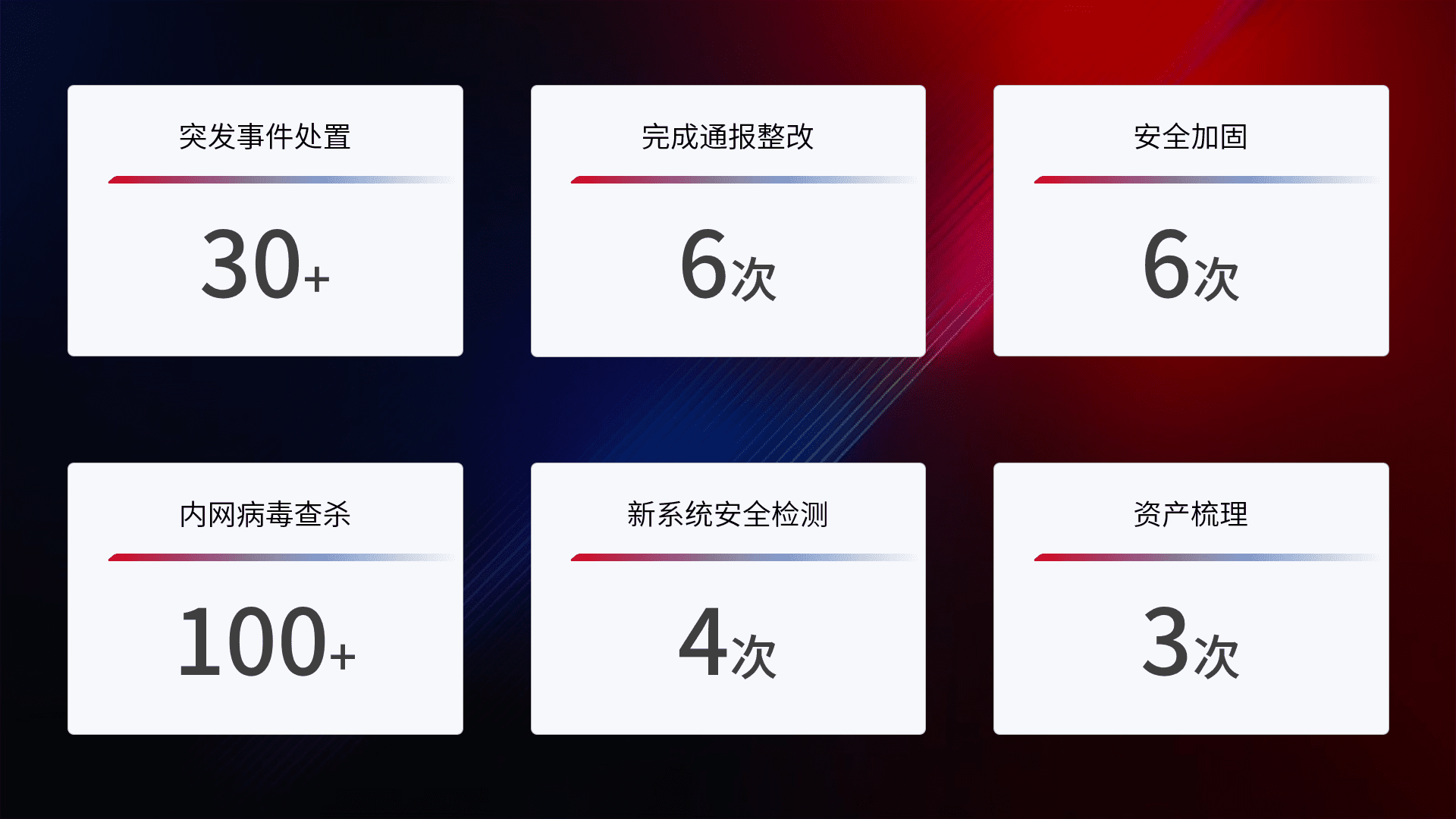 网络安全加固与风险管理:通过技术加固手段,,如加强区域隔离,,,,缩减攻击内网横向移动的范围;优化现有网络安全管理制度,,,,降低网络威胁暴露面,,,,减少被黑客攻击的可能性。。
